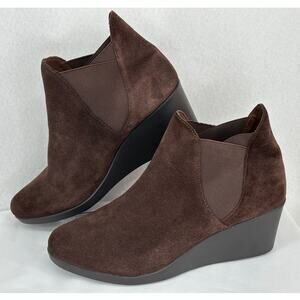 Crocs NWOT Leigh Wedge Heel Espresso Brown Suede Chelsea Ankle Fall Boots 10