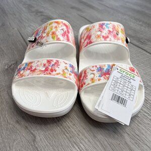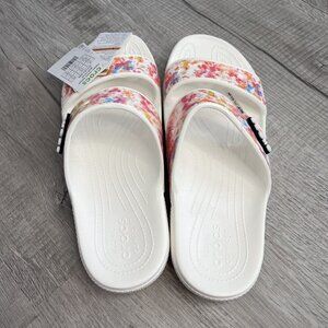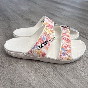 Crocs NWT Mulitcolor Slide Sandals Unisex Men's 13 Watercolor White Relaxed Fit