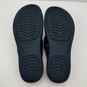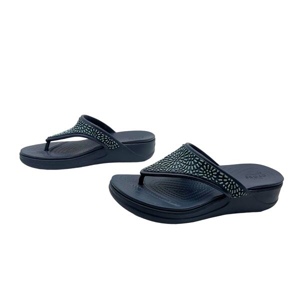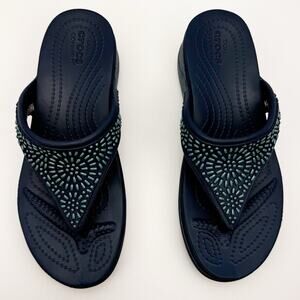 Crocs Navy Blue Monterey Diamante Embellished T-strap Wedge Sandal Sz 6