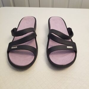 Crocs Navy Blue Rubber Purple Wedge Slide Lightweight Sandals Women Sz 10US/41EU