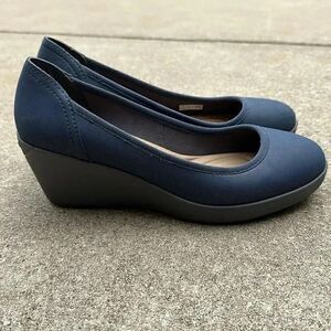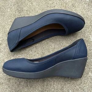 Women’s Crocs Navy & Graphite Marin ColorLite Wedge. Please see photos for indications of use.