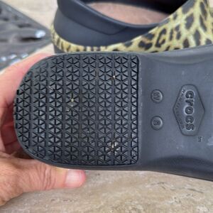 Crocs Neria Leopard Green, black brown slip on Comfort size 8