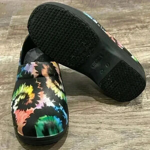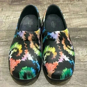 Excellent condition Crocs dual comfort clogs with tie dye print