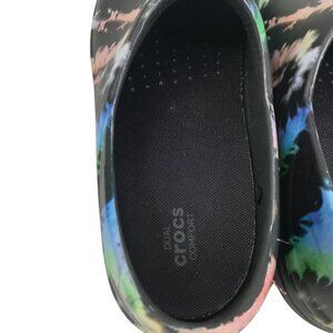 Crocs Neria Pro II Tie Dye Work Clogs Size 10 Womens Dual Comfort Black Pink