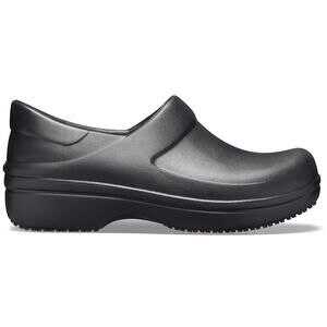 Crocs Neria Pro II Work Clog Black. Who is Neria? She’s dependable and ready to make the rounds with protection and comfort every step of the way. This updated version includes removable, washable footbed liners. Designed for a relaxed fit — a little movement in the heel is normal — adding a dose of freedom without sacrificing the security of a closed shoe. Perfect for workers in healthcare, restaurant, retail and any other demanding, "on-your-feet" industry. Try Neria on your next shift or wherever the day takes you.