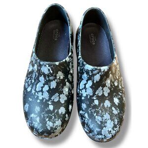 Crocs Neria Pro II Work Clogs Women's Black Gray floral abstract