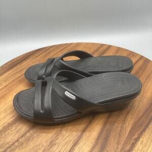 Crocs Patricia II Sandals Womens 6 Black Wedge Comfort Walking Slide Slip On