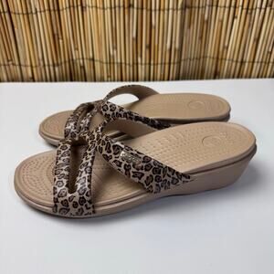 Crocs Patricia II Womens Wedge Sandals Size 7 Leopard Print Slip On Low Heel