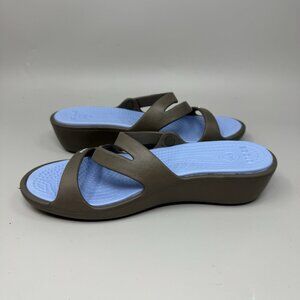 Crocs Patricia Sandals 10386 Strappy Wedge Blue Brown Size 8