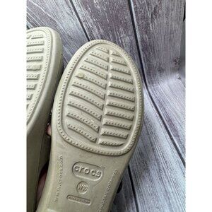 Crocs Patricia Two Toned Taupe Low Wedge Slip On Sandal Women's Size 10