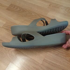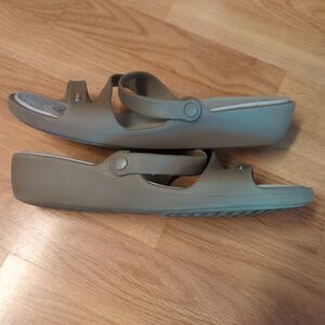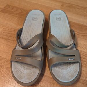 Crocs Patricia Wedge Sandals Womens 12 Tan Slip On Slides Strappy Comfort