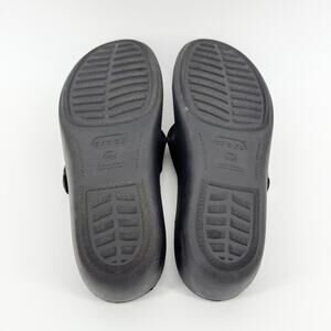 These Crocs Patricia wedge sandals in black are designed for both style and comfort. With a 1.5-inch heel, these slip-on slides are perfect for casual outings or lounging. Size 11 women’s, featuring the signature Crocs cushioning and a lightweight feel. Ideal for warmer weather or all-day wear. In good condition with minor signs of wear on the soles and upper, as shown in photos. Ready to bring style and comfort to your wardrobe!