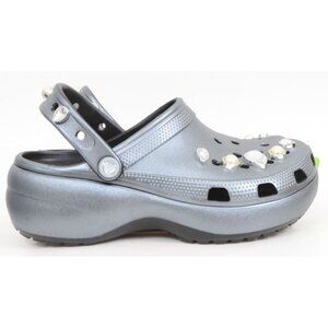 Crocs Pearls & Jewels Women's Size 8 Classic Metallic Silver Platform Clogs NEW