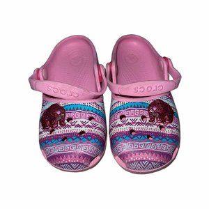 Crocs Pink Aqua Aztec Elephant Clogs Girl's C 13