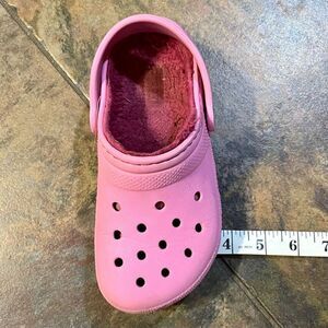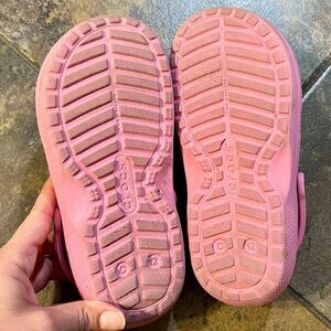 Crocs Pink Lined Slingback Clogs C12. Measurements in photos. In good, pre-loved condition. Comes from a smoke free home. Shoe box not included.