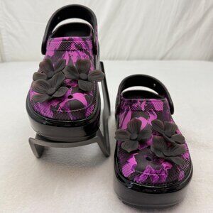 Crocs Platform Sandals Floral Print Purple Black w/Flower Croc Charms
