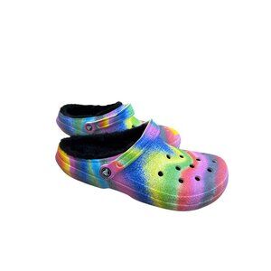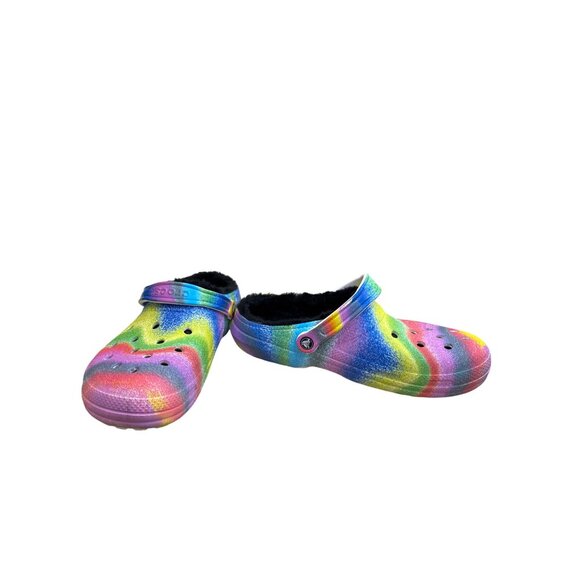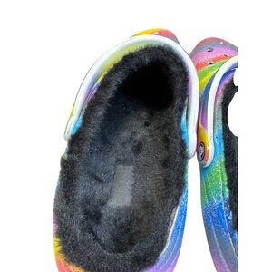 Crocs Rainbow Tie-Dye Fur Lined Clogs slip on shoes size 12 SKU8127