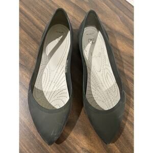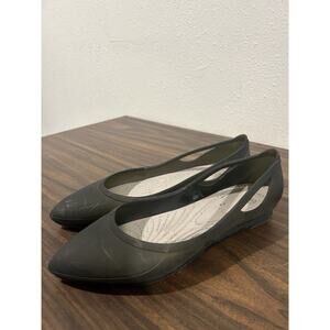 Crocs Rio Ballet Flats Women's Black Sz 6 Cutout Translucent Pointed Toe Slip-On