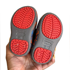 Equipped with long-lasting LEDs that light up with every step, these dino-mite boots tackle wet weather with waterproof Croslite™ soles. Light insulation keeps little feet warm without weighing them down. excellent condition