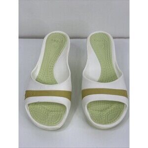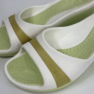 Crocs SASSARI Women's Green/White Wedge Open Toe Sandals Shoes Size 8