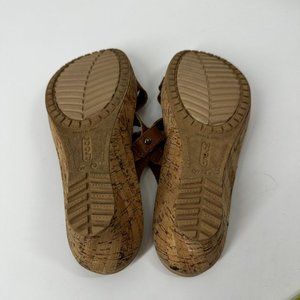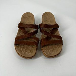 Crocs Sandals Brown Leather A-Leigh Cork Low Wedge Size 8 Slip On