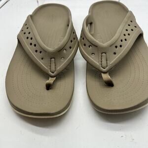 Crocs Sandals Mens 12 Swiftwater Deck Flip Flop Tan Khaki Stucco Thong