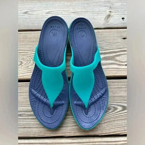 Crocs Sandals Rio Flip Women’s Tropical Teal/Navy Blue Sz 10