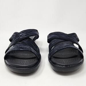 Crocs Sandals Women 8 Molalla II Black Rubber Animal Print Criss Cross Strap Comfort Wedge Shoes