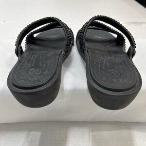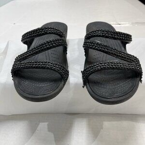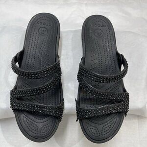 Crocs Sandals Womens 10 Patricia Diamante Wedge Heel Slides Black Sparkles