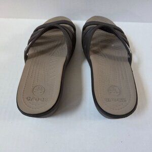 Crocs Sandals Womens 7 Brown Rhonda Strappy Wedge Slides Beach Casual Vacation