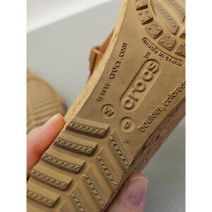 Crocs Sandals Womens 9 A-Leigh Slip On Wedge Slide Brown Leather Open Toe