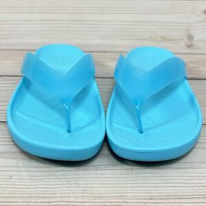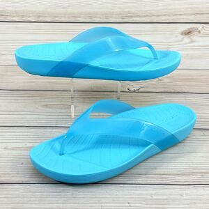 Crocs Sandals Womens Size 9 Blue Splash Glossy Flip Flop Neptune Thong Beach Pool EUC.