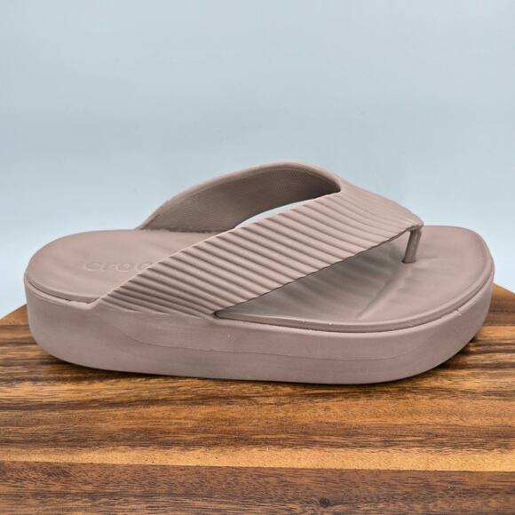 Crocs Sandals Womens 9 Taupe Groove Thong Slip On Platform Comfort Flip Flops