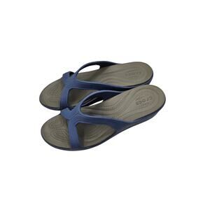 Crocs Sandals Womens Sanrah Strappy Blue Wedge Dual Comfort Slip On Size 9