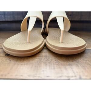 Crocs Sandals Women's Size 7 White Beige Thong Flip Flop Slide Comfort Foam