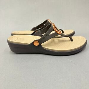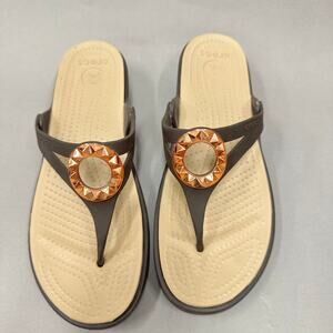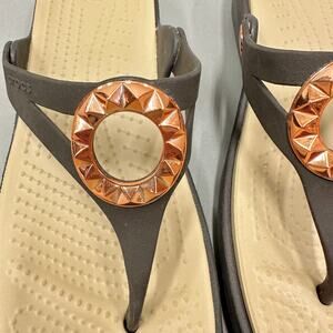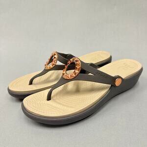 Crocs Sanrah Circle Bow Wedge Flip Sandal Women's Size 5 Espresso Rose Gold