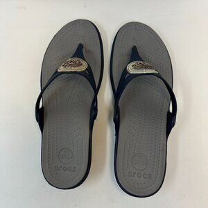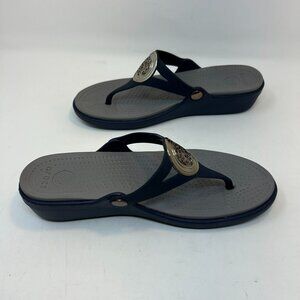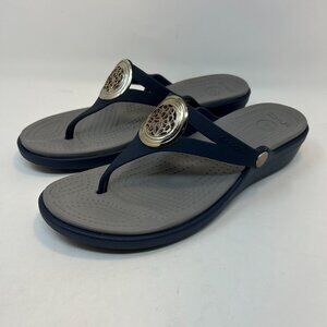 Crocs Sanrah Circle Slide Wedge Flip Sandal Women's 10 Navy Blue Gray