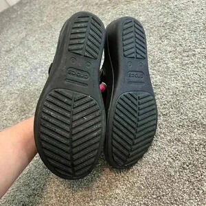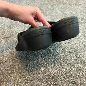 Crocs Sanrah Flip Flop Wedge Black with Gold Circle Women Size 6