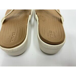 Crocs Sanrah Hammered Circle Gold Cream Wedge Thong Sandal Womens Size 11