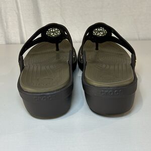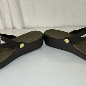 Crocs Sanrah Hammered Circle Wedge Flip Sandal Women's size 10 ESPRESSO/GOLD EUC