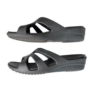 Crocs Sanrah Strappy Low Wedge Sandals Black Slip On Comfort Womens Shoe Size 10