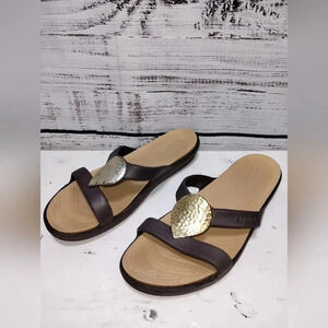 Crocs Sanrah Teardrop Sandals Brown Gold Embellishment Style 204007 Size 7