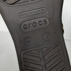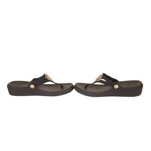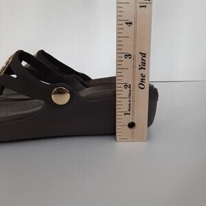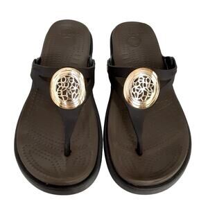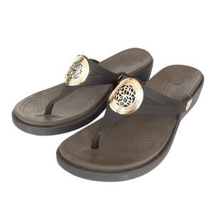 Crocs Sanrah Thong Sandals Gold Medallion Flip Flops Brown Womens 7 Dress Shoes