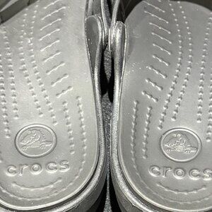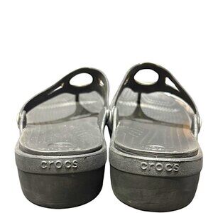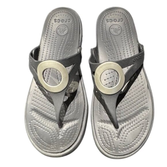Crocs Sanrah Wedge Sandals Silver Circle Black Flip Flop Slip On Womens Size 10