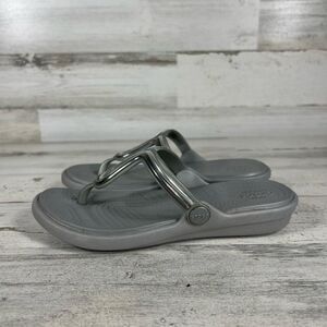 Crocs Sanrah Women's Metal Block Dual Comfort Gray Sandals Size 4