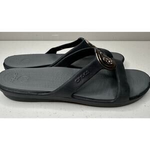 Crocs Sanrah Womens Size 7 Black Graphite Bronze Circle Slide Sandel Flip Flop