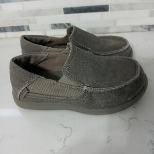 CROCS SANTA CRUZ DUAL COMFORT CHILD SIZE 11 DARK BEIGE SLIP ON CANVAS BOAT SHOES / LOAFERS