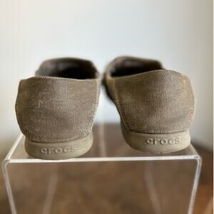 Crocs Santa Cruz II Youth Boy's Size j4 Shoes Khaki Canvas Slip On Kids Loafer