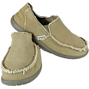 Crocs Santa Cruz Loafers Men Size 11 Canvas Slip On Comfort Boat Shoes Tan Khaki