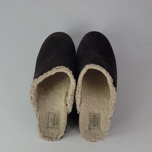 Crocs Sarah Brown Suede Leather Women's Clogs .